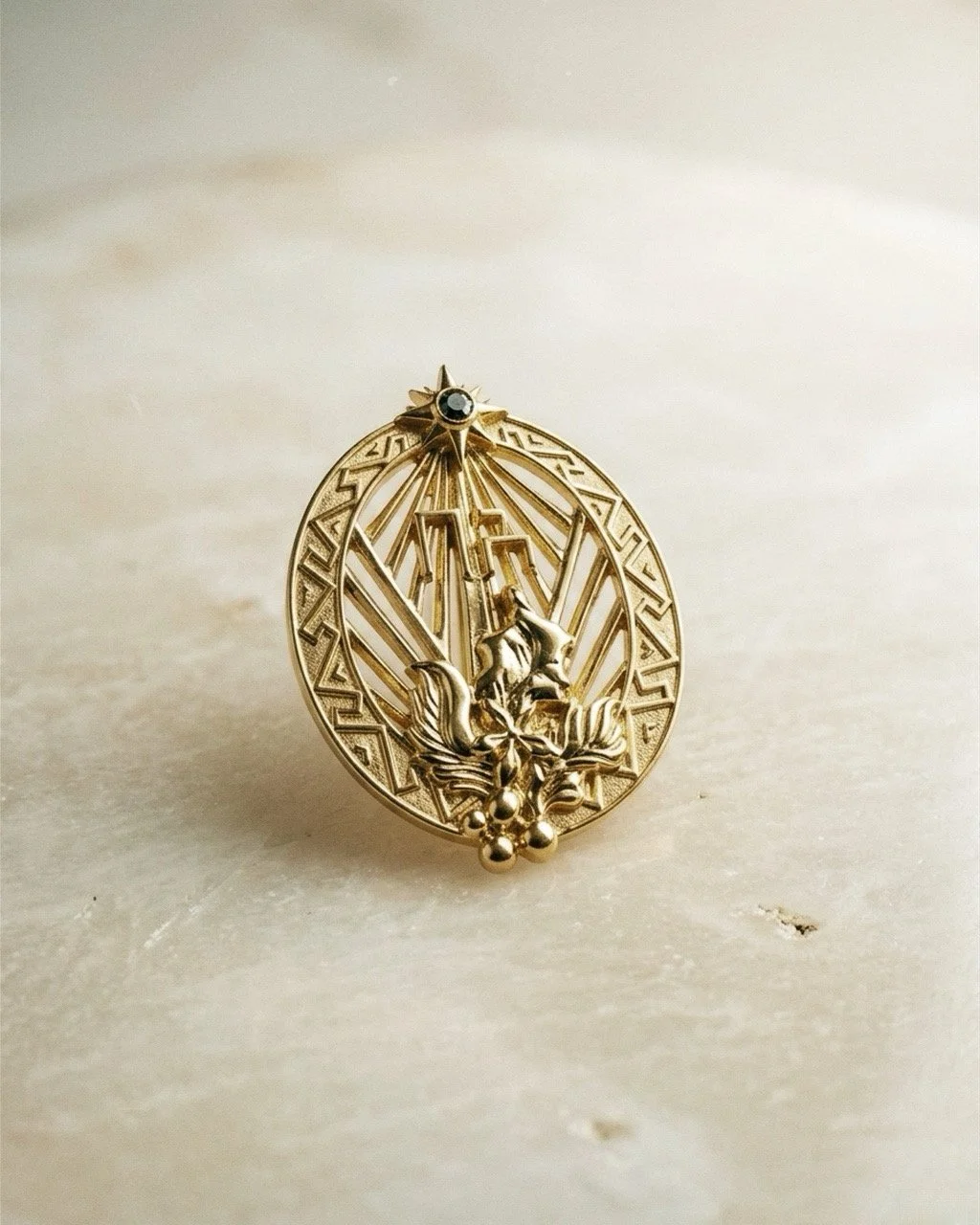 The symbol’s vertical form conveys strength and clarity, while its oval frame draws inspiration from historic wax seals and signet marks used to authenticate objects.